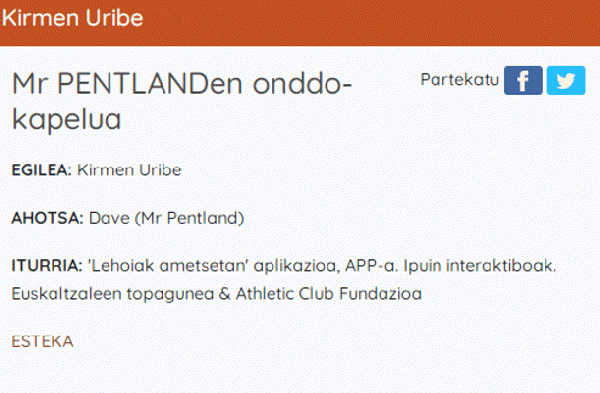Etxegiroan taldekoen webgunean haur- eta gazte-literaturako eta helduen literaturako euskarazko testuak daude entzungai. Testuak, hotsak, doinuak jaso eta... audioen bildumak egin dituzte. Poemak, narrazioak, ipuinak edota iritzi artikuluak jasotzen dituzte, oso egokiak entzumena eta ulermena lantzeko, bai helduentzat eta baita haurrentzat ere. Kalitate handiko audioak daude tartean. Baita literatura aldetik aberatsak ere. Audio honetan "Mr Pentland-en onddo-kapelua" ipuina entzungo dugu, ''Lehoiak ametsetan' aplikazioa, APP-tik hartunda. Ipuin interaktiboak. Euskaltzaleen topagunea & Athletic Club Fundazioa.