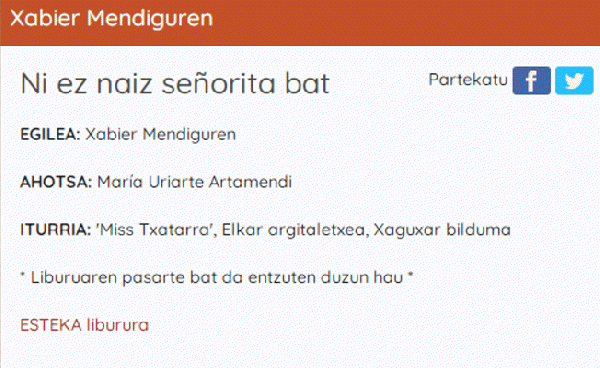 Ni ez naiz señorita bat [Interneteko baliabidea - Audioa] / ahotsa, María Uriarte ; egilea, Xabier Mendiguren