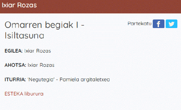 Etxegiroan taldekoen webgunean haur- eta gazte-literaturako eta helduen literaturako euskarazko testuak daude entzungai. Testuak, hotsak, doinuak jaso eta... audioen bildumak egin dituzte. Poemak, narrazioak, ipuinak edota iritzi artikuluak jasotzen dituzte, oso egokiak entzumena eta ulermena lantzeko, bai helduentzat eta baita haurrentzat ere. Kalitate handiko audioak daude tartean. Baita literatura aldetik aberatsak ere. Audio honetan Ixiar Rozasen "Omarren begiak I - Isiltasuna" izeneko pasartea entzun daiteke, "Negutegia" liburutik. Pamiela argitaletxetik (2006).