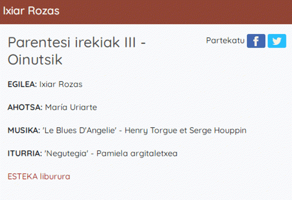 Parentesi irekiak III : oinutsik [Interneteko baliabidea - Audioa] / egilea, Ixiar Rozas ; ahotsa, Maria Uriarte ; ekoizpena, Etxegiroan