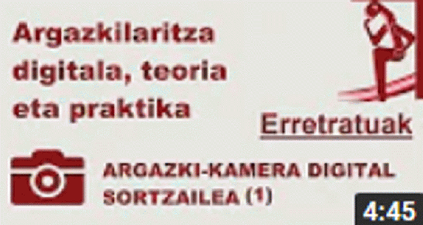 Argazkilaritza digitalaren teoria eta praktika: argazki-kamera digital sortzailea (2) : erretratuak [Interneteko baliabidea - Bideoa] / [gidoia eta muntaia, Txetxo Serrano ; aurkezpena, Fran Urteaga ; bideo-irudiak, Txetxo Serrano ... et al. ; aktoreak, Jokin Urteaga eta Maite Serrano ; grafikoak, Joseba Elorza; musika, Aitor de Olano]