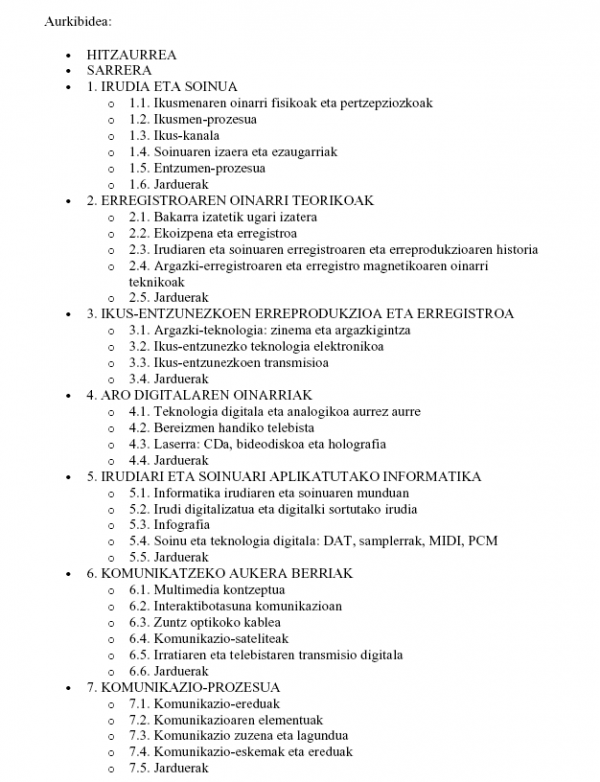 Ikus-entzunezko komunikazioa [Interneteko baliabidea] / [egileak, Joseba Zúñiga, Andoaingo Zine eta Bideo Eskola ; hitzaurrea, Iñaki Aizpuru (Andoaingo Zinema eta Bideo Eskolako zuzendaria) ; itzulpena, Enara Azkue ; zuzenketak, Elhuyar Hizkuntza zerbitzuak]