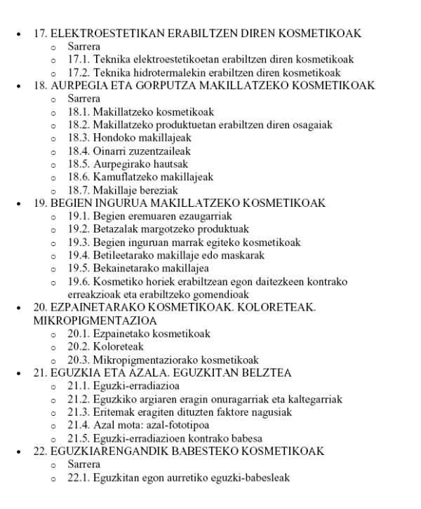 - Estetika eta edergintzarako kosmetologia (Modulua)