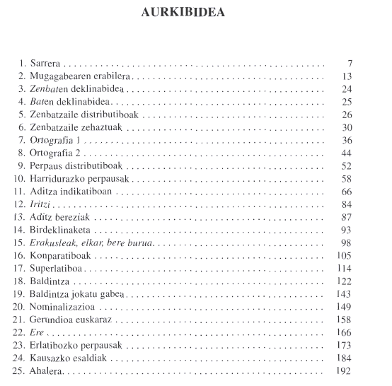 Hizkuntzaren irakaskuntza bildumaren zenbaki honen zazpigarren argitaraldia da. Liburu honen hartzaileak dira euskara maila handia dutelarik honako azterketa hauetako bat prestatzen ari direnak: EGA, Hizkuntza Eskolako 5. maila, Hezkuntzako 2. HE eta Administrazioaren 3. HE. Dena den, Bigarren Hezkuntzako eta Batxilergoko ikasleek ere baliagarria aurkituko dute.