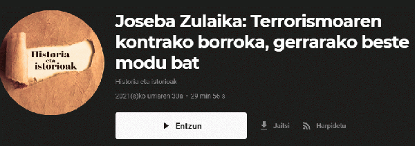 Joseba Zulaika [Interneteko baliabidea - Audioa] : terrorismoaren kontrako borroka, gerrarako beste modu bat / ekoizpena, EITB