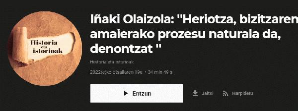 Iñaki Olaizola [Interneteko baliabidea - Audioa] : "heriotza, bizitzaren amaierako prozesu naturala da, denontzat" / ekoizpena, EITB