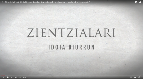 "Zientzialari" izeneko atal honen bitartez UPV/EHUko Kultura Zientifikoko Katedrak zientziaren oinarrizko kontzeptuak azaldu nahi ditu euskal ikertzaileen laguntzarekin. Bideo honetan: landare-komunitateen gaurkotasuna eta etorkizuna ezagutzeko, UPV/EHUko Landarediaren Aniztasuna eta Ekologia IKERLAND taldeko Idoia Biurrun ikertzailearekin, bildu gara. Ekologia eta landare zientzietan erabiltzen diren terminoen artean, landare-komunitateen kontzeptua aurki daiteke. Landare elkarteei egiten dio erreferentzia kontzeptuak eta antzeko eskakizun ekologikoak dituzten landareez osatuta daude, hau da, klima eta ingurune baldintza berdinetara moldatuta daudenak. Landare-komunitateak sailkatzeko fitosoziologia deritzogun metodologia erabiltzen da. Tresna berria da eta bere helburua komunitate desberdinak ezagutzera ematea da, landare-komunitate zehatz bat osatzen duten espezieen identitateaz baliatuz. Komunitate horiek izendatzeko antzekotasun folistikoa (lurzoruaren material organikoa) hartzen da kontuan espezieak hainbat kategoriatan sailkatzeko. Fitosoziologiak espezieen osaeraren araberako antzekotasun maila diferenteak barneratzen ditu. Sailkapen hauek egitea garrantzitsua da oinarrizko zientzian eta baita zientzia aplikatuetan. Besteak beste, klima-aldaketa globalak landare-komunitatetan izango duten eragina neurtzeko eta biodibertsitatearen kontserbazioa bermatzeko.