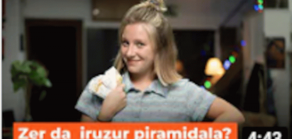 Zer da Iruzur Piramidala? Nola funtzionatzen dute salmenta piramidaletan oinarritutako eskemek? Denak berdinak dira? Zein forma hartzen dituzte gaur egun? Adi Alazne Astorgaren azalpenei. Euskal Wikilarien Kultura Elkarteak (EWKE) "Ikusgela" proiektua sortu eta abiatu du: euskarazko ikus-entzunezko pedagogiko libreen ataria izango da Ikusgela.eus, eta bertarako sortutako bideo pedagogikoak, euskaraz eta libreak, Wikipediaren parte ere bilakatuko dira. Sarean euskararen presentzia areagotzeko eta euskarazko Wikipedia osatzeko helburua du. Filosofia, ekonomia, historia, matematika eta beste hainbat arlori lotutako bideo pedagogikoak zabalduko ditu Ikusgela proiektuak, euskaraz eta modu askean partekatzeko. Jakintza "narratiba berrietara" egokitzea helburu, Euskal Wikilarien Kultura Elkarteak koordinatzen du proiektua eta Hiru Damatxo arduratzen da ikus-entzunezkoez. Ikasleei zuzendutako edukiak dira, baina baita jorratutako gaietan interesa duen orori zuzenduak ere. Eremu formaletatik harago, "eremu informalean euskarazko edukiak ikustera" ere ohitu nahi dute jendea.