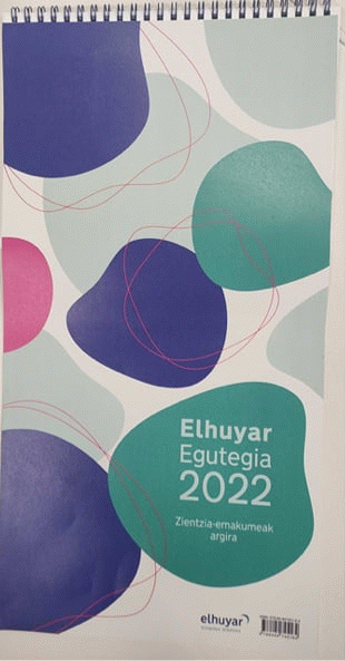 Elhuyar egutegia 2022 . zientzia-emakumeak argira / [edukiak eta diseinua, Elhuyar ; ilustratzailea, Izaskun Alberdi Landaluze]