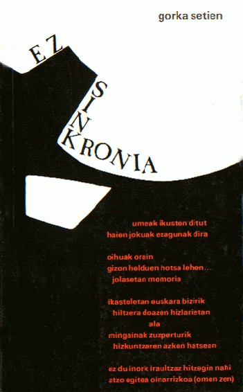 Ez da lehenengo aldia Gorka Setienen poemek argia ikusten dutela. Sail honetako "Eta zergatik ez... Sigrid?" liburuan, eta beste zenbait solte aldizkaritan ere agertu izan dira. Prosa lanak ere argitaratu izan ditu ("Urte guztiak dira diferente" eta "Aurten ere diferente izanen da"). Hemen duzu, berriz, bakarka argitaratzen duen lehenengoa, "Ez sinkronia" izenekoa. Argitaratzea eta konstantzia ez doaz, noski, beti bide beretik. Lehenengo aldiz poeta galdera zuzen batekin plazaratzen da. Erantzunik gabeko galdera? Berak, egungo poetak bezala, agian erantzun bakar batekin, zure erantzunarekin, nahikoa du. Gorka Setienek poema aleak, irudiak, musika bakoitza gauzatzen ditu, hitzetan mundu autonomo bat sortuz, bere erreferentzia eta harreman bereziez; eta hor haustura sortzen da, dardarra, eta gehienetan suntsidura. Puntu honetan idazlearen harridura sortzen da, bere harridura ahalmen haundia. Hor sortzen du Gorkak konplizitate gunea. Sareetan erori edo ez, hautaketa zurea da.