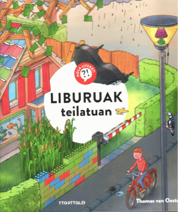 Liburuak teilatuan / [testua eta ilustrazioak] Thomas Van Oostrum ; [itzulpena, Ihintza Elsenaar (Bakun SL)]