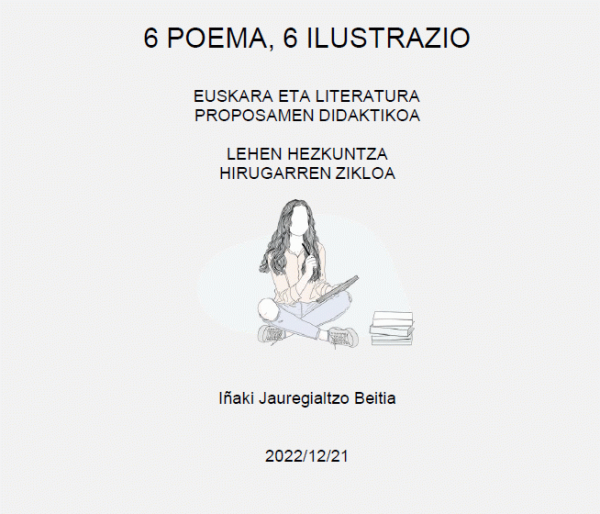 6 poema, 6 ilustrazio egitasmoa Lehen Hezkuntzako Hirugarren Zikloko irakasleentzat dago prestatuta. Hauek dira poemak aukeratzeko erabilitako irizpideak: jorratzen diren gaiak ikasleen adinerako egokiak izatea, gogoetarako aukera ematea, poema ulerterrazak izatea, poeta esanguratsuak aurkeztea, jolaserako eta sormenerako aukera eskaintzea eta emakumezko eta gizonezko erreferenteak zaintzea.