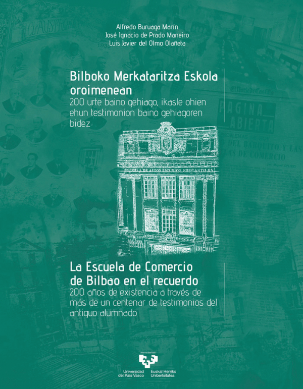 Bilboko Merkataritza Eskola oroimenean : 200 urte baino gehiago, ikasle ohien ehun testimonion baino gehiagoren bidez = La Escuela de Comercio de Bilbao en el recuerdo : 200 años de existencia a través de más de un centenar de testimonios del antiguo alumnado / Alfredo Buruaga Marín, José Ignacio de Prado Maneiro, Luis Javier del Olmo Olañeta