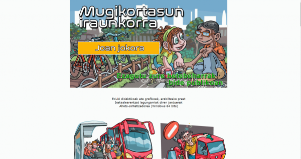 Mugikortasun iraunkorra [Interneteko baliabidea - Webgunea] / [zuzendaritza, programazioa eta 3D modelatua, Francisco Juan Baños Enriquez ; 2D ilustrazioak eta 2D animazioak, Iñigo Sarasola ; aholkularitza pedagogikoa eta curriculumeko edukiak, Paz Mostajo Sepúlveda]