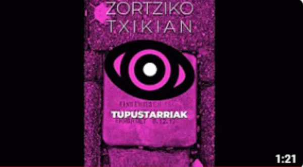FilmSerie(ak): Ikusgela (Euskal Wikilarien Kultura Elkartea) | Ikusgela. Zortziko txikian (Euskal Wikilarien Kultura Elkartea) ; ; 12Publication details: Donostia : Euskal Wikilarien Kultura Elkartea, 2024Deskribapen fisikoa: Baliabide elektronikoa (2 min) : soinuduna, kolGaia(k): Generoa/Forma:Sareko errekurtsoak: