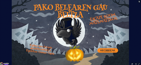 Gau Beltzean oinarritutako escape room birtuala. Bakarka, bikotekidearekin, familian edota ikasleekin egiteko modukoa. Lehen Hezkuntzako 6. mailatik aurrera egiteko modukoa, txikiagoek laguntza beharko dute.