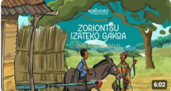 Zoriontsu izateko gakoa [Bideoa] = Caabi ngir am mbëkte / [jatorrizko testua eta ahotsa, Macoumba Ndiaye Mbaye ; jatorrizko testuaren zuzenketa eta ahotsa, Aboubacry Kane Diack ; testuen moldaketa eta ahotsa euskaraz, Yolanda Arrieta ; ilustrazioak, Enrique Morente ; grabaketa, soinu-diseinua eta edizioa, Irati Zarandona ; animazioak, Javi Galdos ; egilea, Labayru Fundazioa]