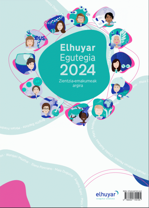 Elhuyar egutegia 2024 : zientzia-emakumeak argira / [edukiak eta diseinua, Elhuyar ; ilustrazioak eta maketa Izaskun Alberdi Landaluze]