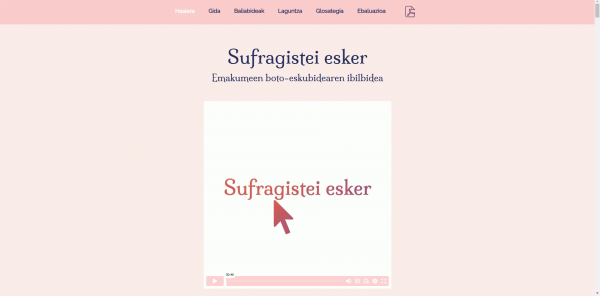 Sufragistei esker [Interneteko baliabidea - Webgunea] : emakumeen boto-eskubidearen ibilbidea / [irudi grafikoak, Andrés David Espinoza Álvarez ; koordinazioa eta gidoia, Leire Mitxelena Erice, Pilar Pérez Píriz ; aholkulari pedagogikoa, Idoia Urkiri Azkoitia ; webgunea eta diseinu grafikoa, Juan Mari Zurutuza Zapirain]