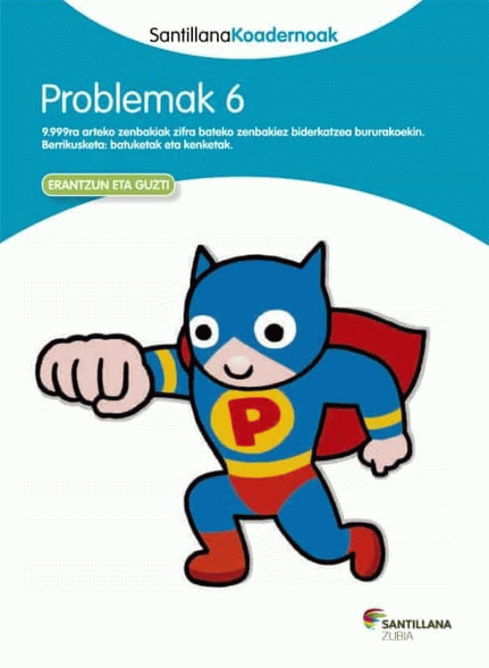 Problemak 6 : 9.999ra arteko zenbakiak zifra bateko zenbakiez biderkatzea bururakoekin : berrikusketa, batuketak eta kenketak [Lehen Hezkuntza 2] / testua, Beatriz Coullaut Zafra ... [et al.] ; irudiak, Goyo Rodriguez ; [hizkuntza-egokitzapena, Elisabet Gonzalez ; zuzenketa, Amaia Lasheras]