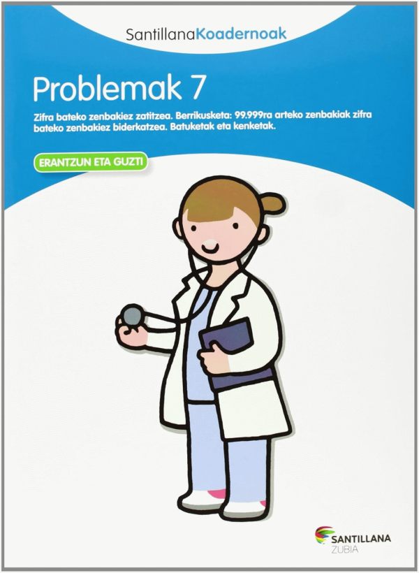 TestuaHizkuntza: Basque Original language: Spanish Serie(ak): Problemak (Santillana-Zubia) ; ; 7 | Santillana koadernoakPublication details: Etxebarri : Zubia, L.G. 2013Deskribapen fisikoa: 30, [2] or. : kol. ir. ; 29 cmISBN: - 978-84-9894-331-3