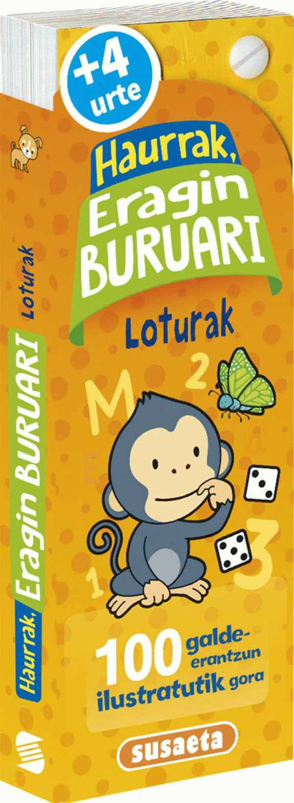 100 galde-erantzun ilustratutik gora, haurrek letrak, loturak, zenbakiak eta beste gauza asko ikas ditzaten jolastu eta dibertitu bitartean.