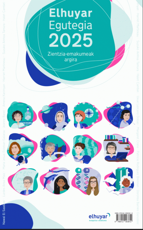 Elhuyar egutegia 2025 : zientzia-emakumeak argira / [egilea, Elhuyar ; ilustratzailea, Izaskun Alberdi Landaluze]
