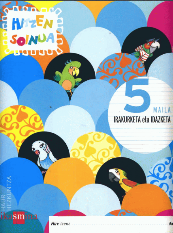 Hitzen soinua : irakurketa eta idazketa : koadernoa 5. maila : Haur Hezkuntza / [egileak, Ana Serna Vara eta Gema Arratibel ; marrazkiak, Esther Pérez-Cuadrado, Malena F. Alzu ; itzulpena eta zuzenketak, Olaia Salegi Urbieta (Bakun SL)