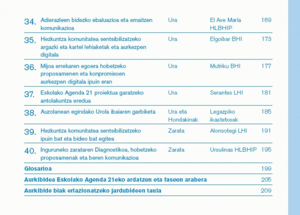 40 jardunbide eskolako Agenda 21 programan [Interneteko baliabidea] : eskola iraunkortasunerantz = 40 experiencias en Agenda 21 escolar / koordinazioa: Jon Benito Iza, Ricardo Hernández Abaitua eta Jose Manuel Marañon Zalduondo.