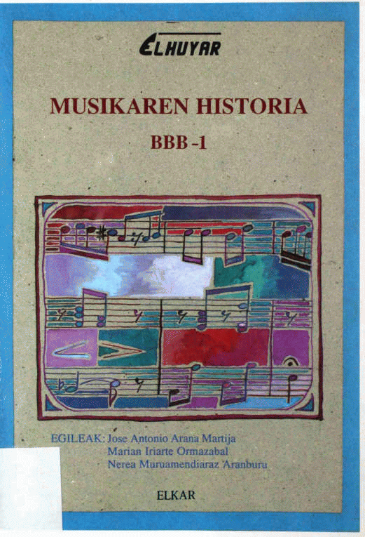 Musikaren Historia : BBB 1 / egileak, Jose Antonio Arana Martija, Marian Iriarte Ormazabal, Nerea Muruamendiaraz Aranburu ; Elhuyar Musika-Taldea