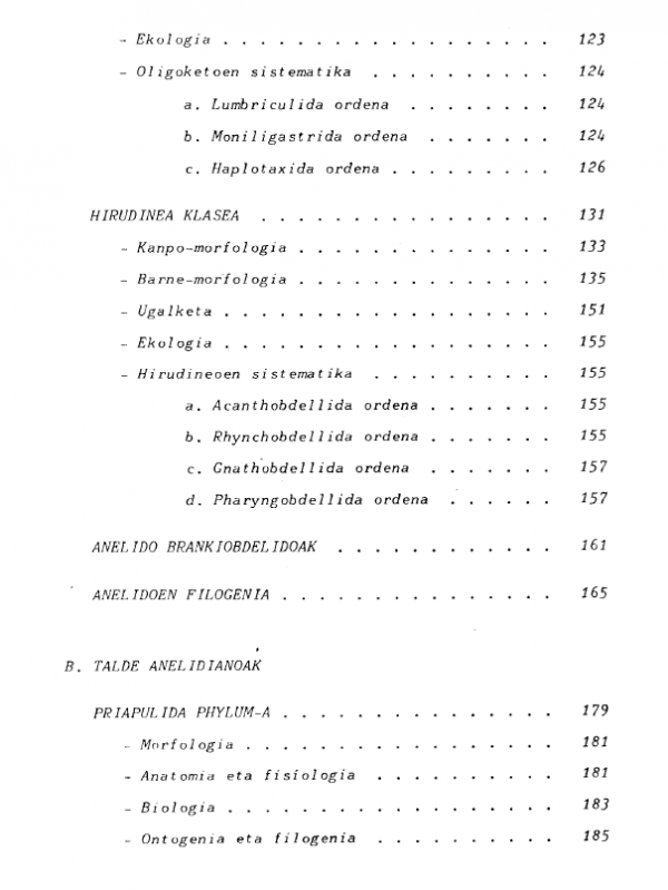 Gaia(k): Generoa/Forma:Sareko errekurtsoak:Adina / Maila: UEUren Natur Zientzietako taldeak egindako lana da, natur zientzietan oinarrizko materialaren hutsunea bete nahian egina. Kontsulta-liburu gisa burutu da, eta Leioako Zientzi Falkultatean egindako mintegi batzuren bidez 3. mailako Zoologia asignaturaren programaren zati bati dagokio.