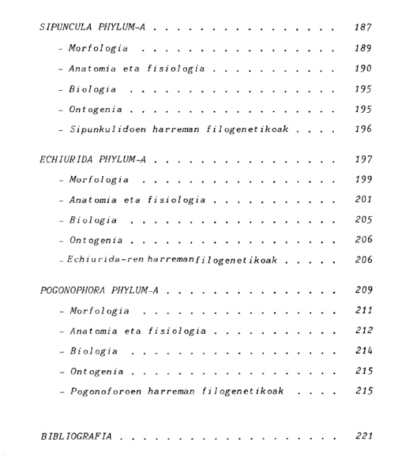 UEUren Natur Zientzietako taldeak egindako lana da, natur zientzietan oinarrizko materialaren hutsunea bete nahian egina. Kontsulta-liburu gisa burutu da, eta Leioako Zientzi Falkultatean egindako mintegi batzuren bidez 3. mailako Zoologia asignaturaren programaren zati bati dagokio.