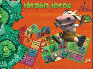 Ezaugarriak: albo bietatik jolasteko 4 lamina. Aurretik, fruituen eta barazkien irudiak daude eta atzealdetik elementu horien izenak, euskaraz eta ingelesez. 36 fitxa solte, irudidunak. Irudia irudiarekin lotzen jolas daiteke, eta baita irudia testu idatziarekin lotzen ere.