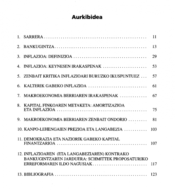 Gaia(k): Generoa/Forma:Sareko errekurtsoak:Adina / Maila: Inflazioa nazio-mailako ekonomiaren arazoa da, arazo makroekonomikoa. Ez da egokia "inportaturiko" inflazioaren bila abiatzea. Kontsumitzaileen prezio-indizeak (arazo mikroekonomikoa) ez dauka zerikusirik inflazio makroekonomikoarekin. Inflazioa ez datza moneta-alokairuen gehikuntzaren eta lan-indarraren gehikuntzaren arteko desberdintasunean; ezta enpresen eta langileen arteko errenta-banaketan ere. Errentaren banaketak ez dauka zerikusirik inflazioarekin; izan ere, eragileen arteko gatazkak ezin du aldatu errenta. Gatazka horrek ez du ukitzen eskari osoaren eta eskaintza osoaren arteko erlazio makroekonomikoa (inflazioa definitzen duena). Inflazioa ez dagokio eragile ekonomiko desberdinen portaera ekonomikoari. Bernard Schmittek frogatu duen bezala, presio inflaziogileek produkzio-prozesuan daukate beren jatorria, ez jadanik produzitutako ondasunen zirkulazioan. Anomalia inflaziogilea bukatzeko, beharrezkoa da erreforma monetario sakon bat egitea kontabilitatean.