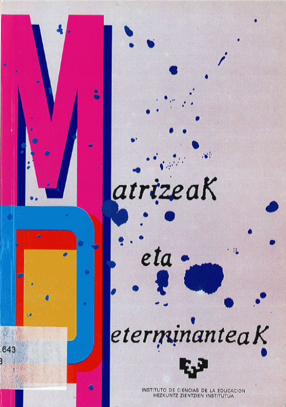 Matrizeak eta determinanteak : UBI-rako egokiak / egileak, Fernando Arbulu Arin, Itziar Sarasola Errazkin, Lasarteko Institutuko Irakasleak