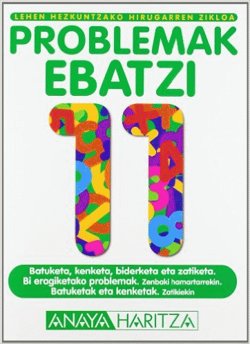 Problemak ebatzi 11 Lehen Hezkuntzako Hirugarren Zikloa: Batuketa, kenketa, biderketa eta zatiketa; Bi eragiketako problemak zenbaki hamartarrekin; Batuketak eta kenketak zatikiekin / José Carlos Mejía, Benito Romeralo Irudiak: Ana Sáez