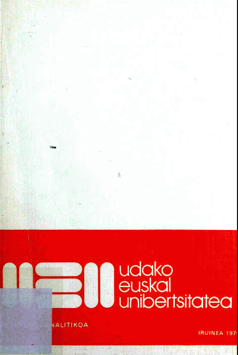 TestuaPublication details: [Iruñea] : Udako Euskal Unibertsitatea, 1979Deskribapen fisikoa: 275 or. : z.-b. ir. ; 21 cmGaia(k): Generoa/Forma: